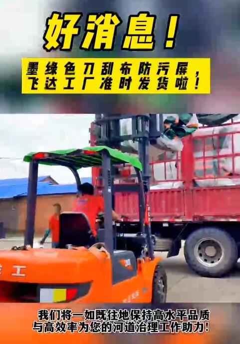 好消息!您订购的墨绿色刀刮布防污屏已从飞达工厂发货啦!我们精心包装,确保产品完好无损地踏上旅途。感谢您的耐心等待与信任支持,物流正在快马加鞭,不久将送达您的手中,祝您使用愉快!#水域分区#隔离污染#控制水藻和浮萍#围隔价格#河道治理设备