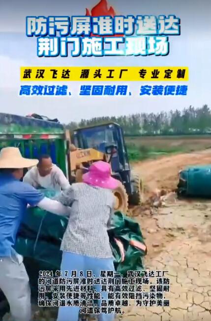2024 年 7 月 8 日,星期一,武汉飞达工厂的河道防污屏准时送达荆门施工现场